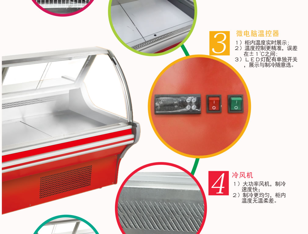 ③ 冷柜內外溫差較大時,遇空氣溫度較大的天氣時玻璃門上有水霧凝結,將溫度調整后即可。