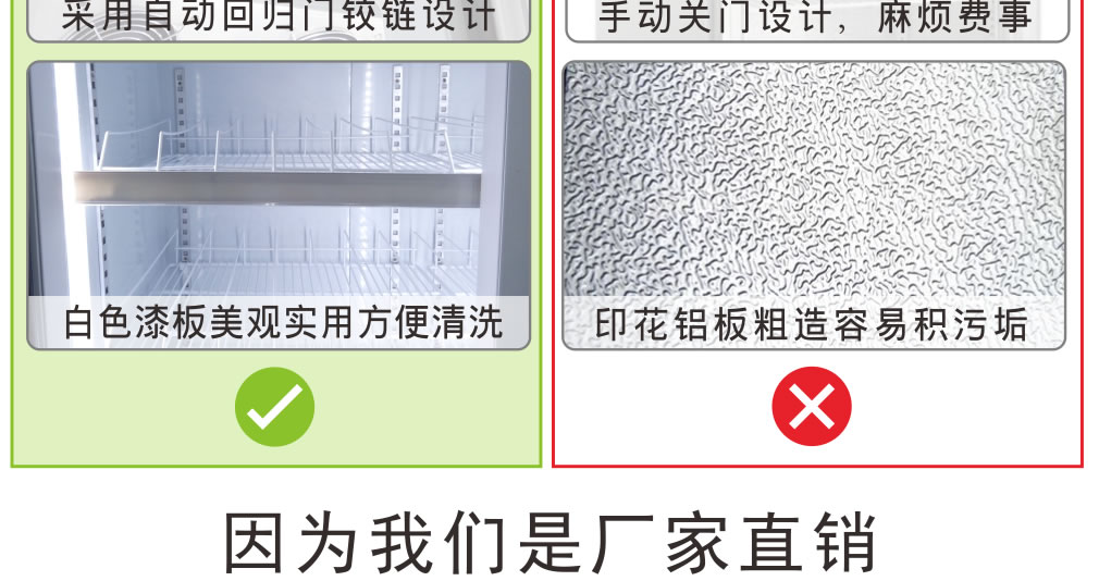 ② 冷柜禁止放在陽光直射的地方,否則因長期達(dá)不到停機溫度,影響冷柜壽命;